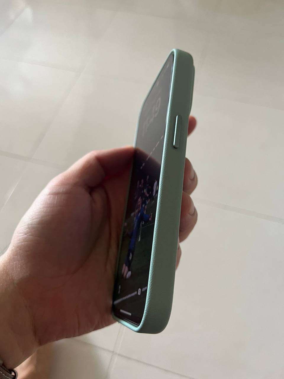 The seafoam colour is the icing on the cake. I love green and this is a subtle, pale green that really complements the natural titanium. Sorry i only have a crappy photo from my iPhone SE.