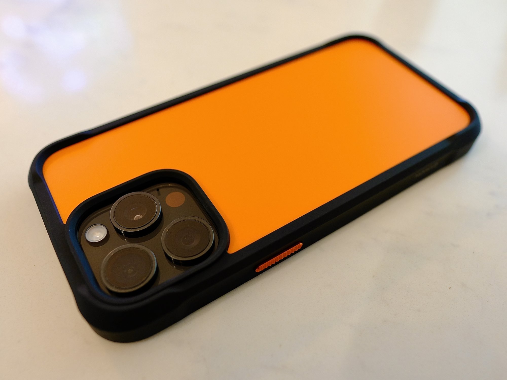 Looking good - esp for Halloween vibes!Nomad Rugged case in Ultra Orange on black iPhone 15 Pro Max.