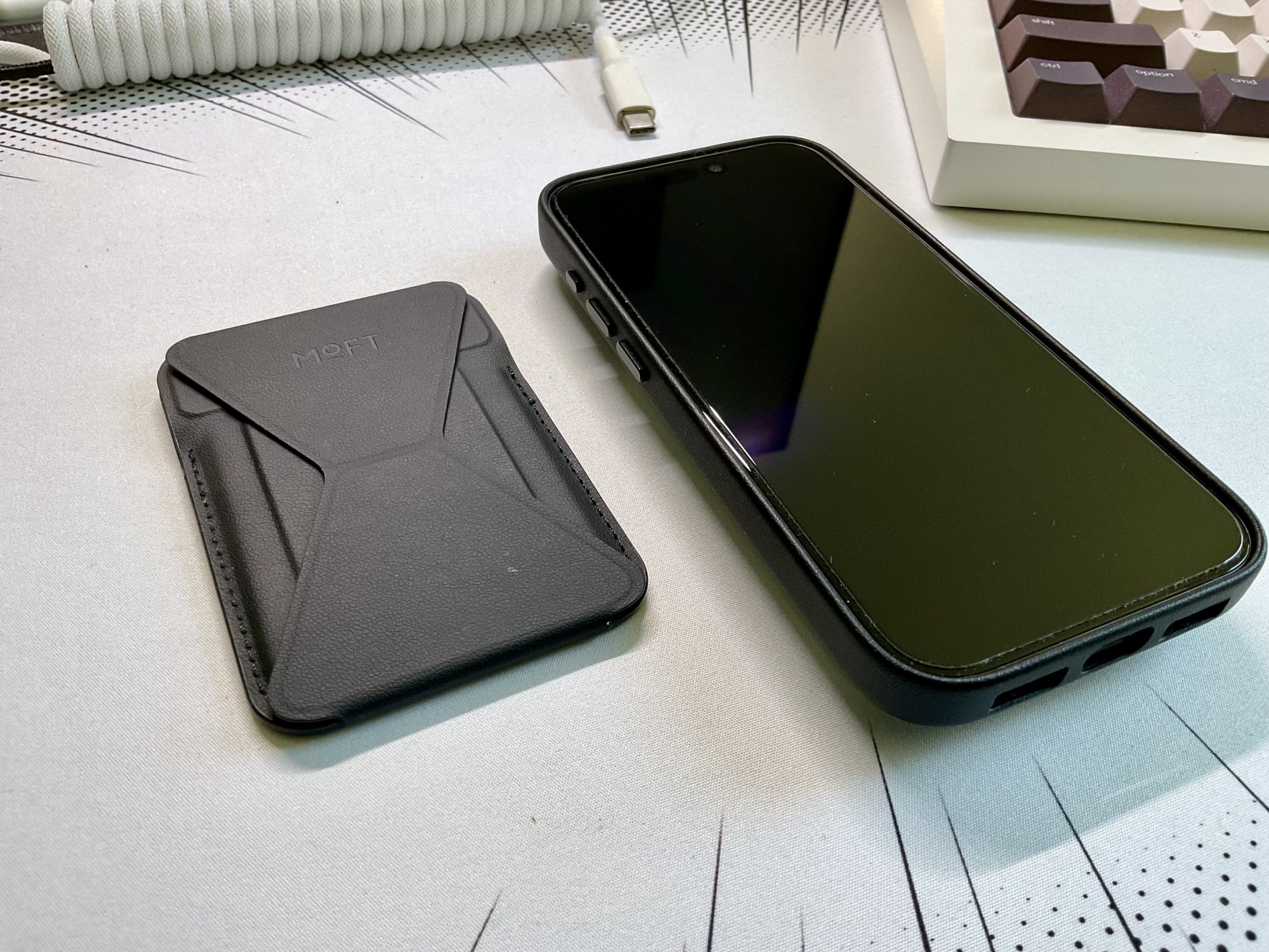 MOFT order came in. Had both a black and a white Snap MOVAS case in the order but they missed my white one, so had to get them to ship that out. First impressions of the black one, very nice and soft feeling material that is quite smooth and not that much texture to grip to but given it's not the iPhone 15 Pro Max size, I don't think I'm going to have any issues with it slipping out of my hand. Overall very nice feeling.