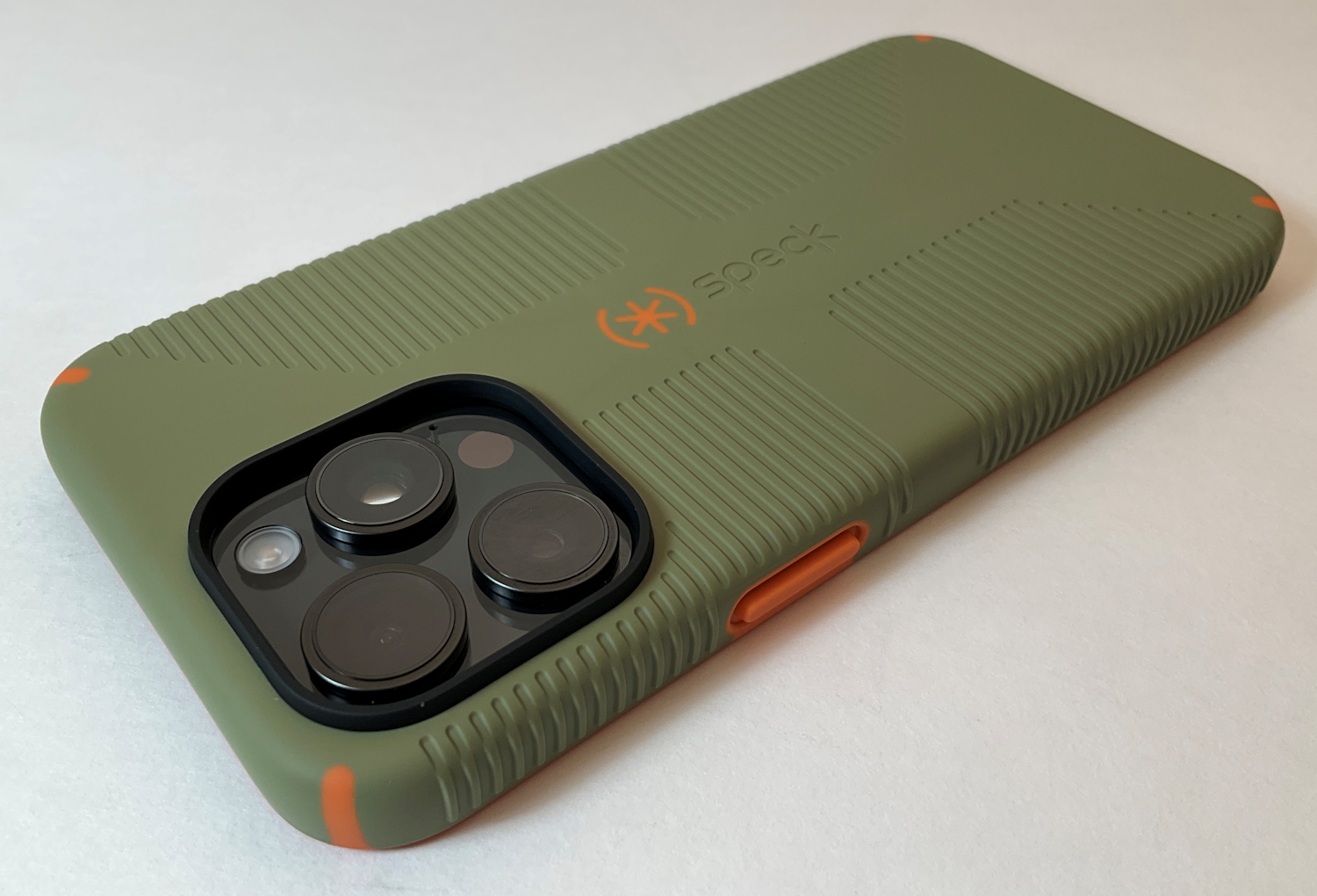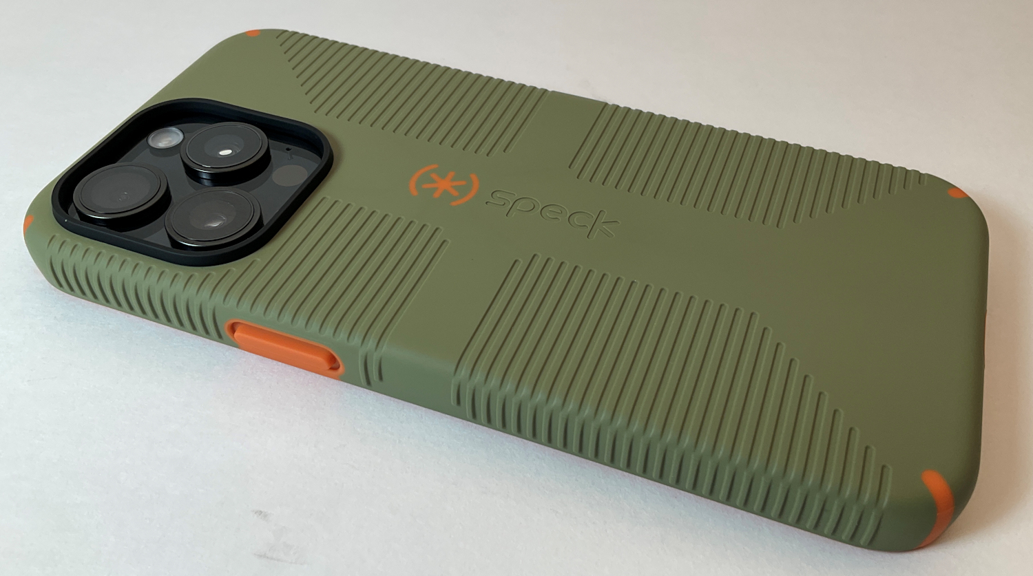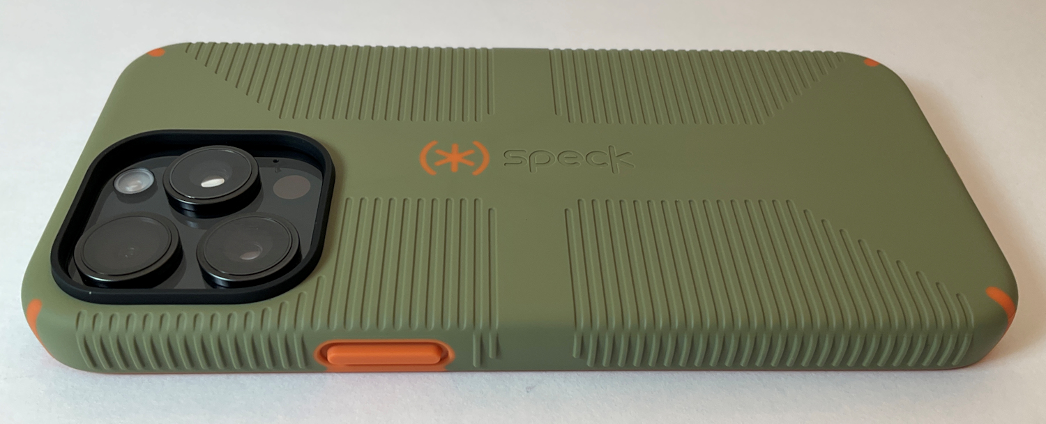 Speck iPhone 15 Pro Max Case - Built for MagSafe, Drop Protection Grip - Scratch Resistant, Soft Touch, 6.7 Inch Phone Case - CandyShell Grip Bush Green/Pumpkin Pie