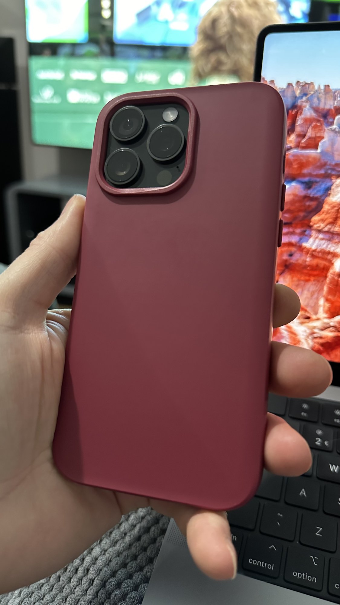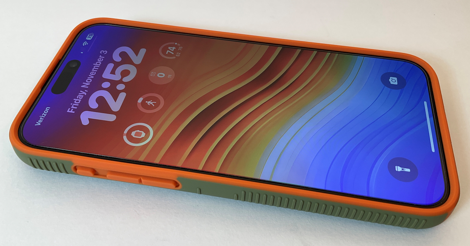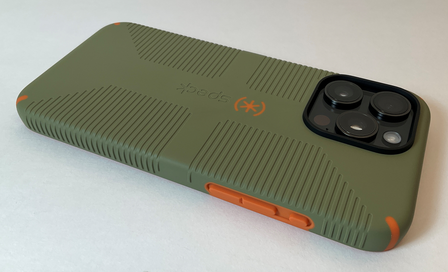 Speck iPhone 15 Pro Max Case - Built for MagSafe, Drop Protection Grip - Scratch Resistant, Soft Touch, 6.7 Inch Phone Case - CandyShell Grip Bush Green/Pumpkin Pie
