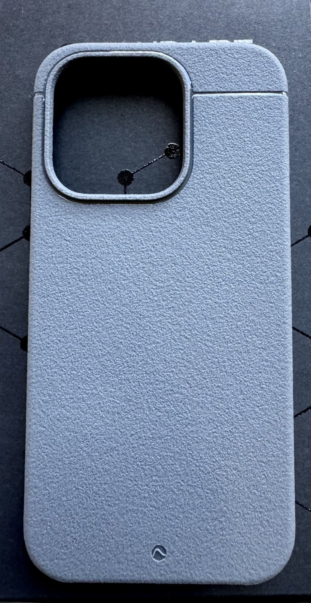 The first case I tried on was the Sheath: the texture is an interesting feeling.. not super grippy, but certainly grippier than my smooth TPU case and Elago silicone. It’s plastic, but kinda like it’s mixed with a tiny bit of rubber. I love the minimalistic look of it, black with the slim line across the top. I don’t normally like branding on cases, but their logo on the bottom center is minimal enough it doesn’t bother me. I appreciate the small detail of removing the texture at the bottom side of the case. The microfiber lining on the interior is nice. The fit is tight and solid, really feels nice to hold. Snug fit, but easy enough to take off.