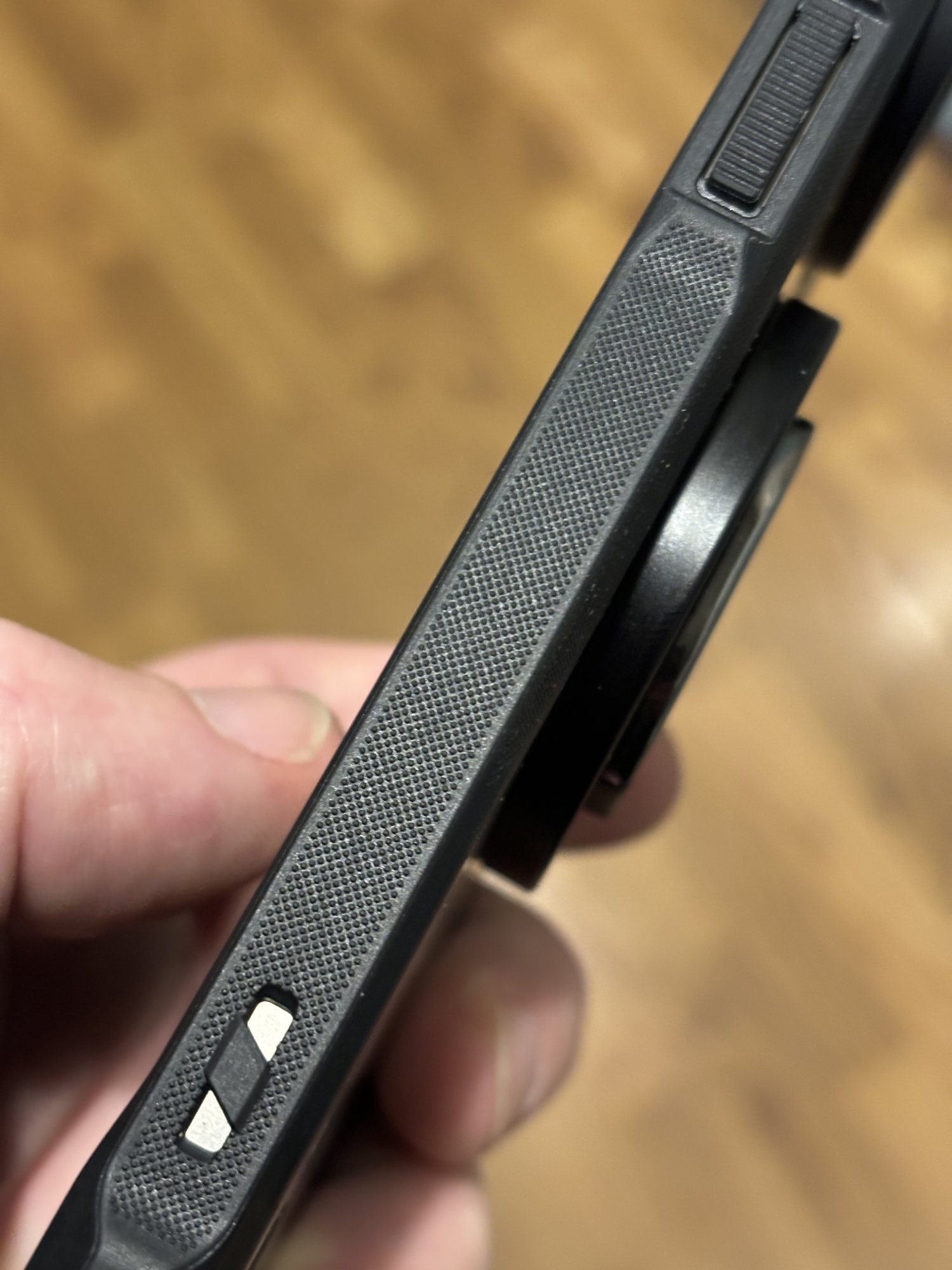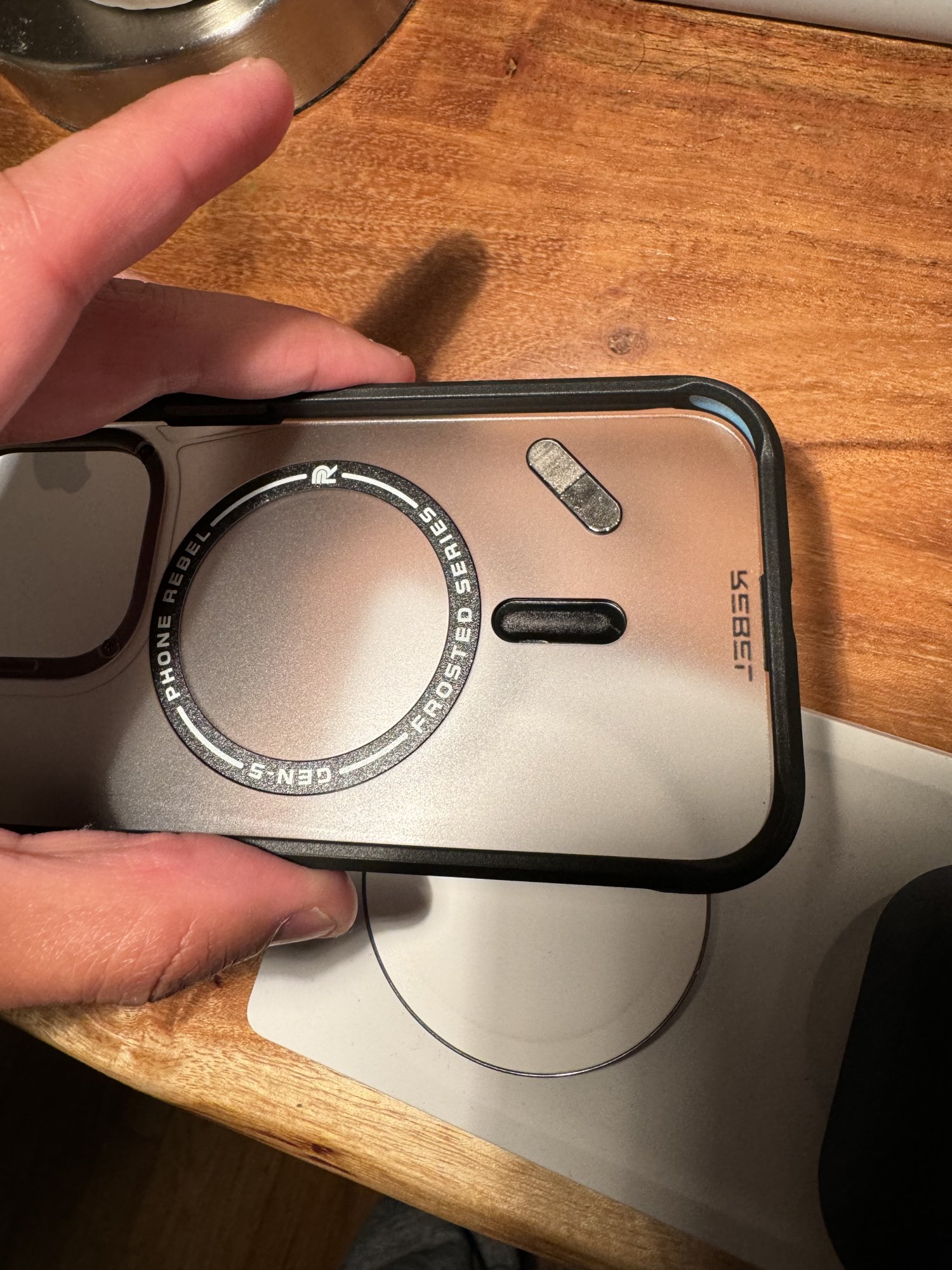 View attachment 2317303Just received the frosted case for my iPhone 15 pro yesterday and had it on for a few hours and when I took it off the alignment magnet was stuck to my phone. Disappointing to say the least. Also, my charging cable I use for CarPlay in my car is too thick to use with the PR case.
