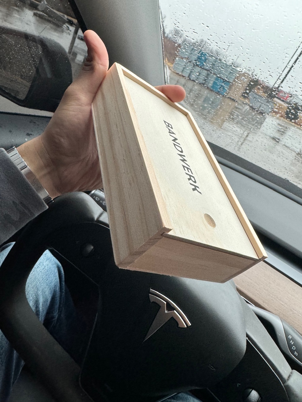 Bandwerks classic case came in. I’ll update with my thoughts in a few days. First impressions. Loooooove how this leather feel. And love how the phone looks from the front. Reminds me of the iPhone 4 where the metal bumpter stuck out. As I feared the case does make the phone quite a bit more wide than I liked. But as a plus this case is a lot thinner than I expected. It’s on par with the Andar for thickness. Looks damn good tho. Will definitely rock it for party’s or weddings lol. Might order the black too. Presentation is top notch, it comes in a wooden box with a high quality screw driver and little slip in soft touch bag things for the case and screw driver. Also has extra screws.