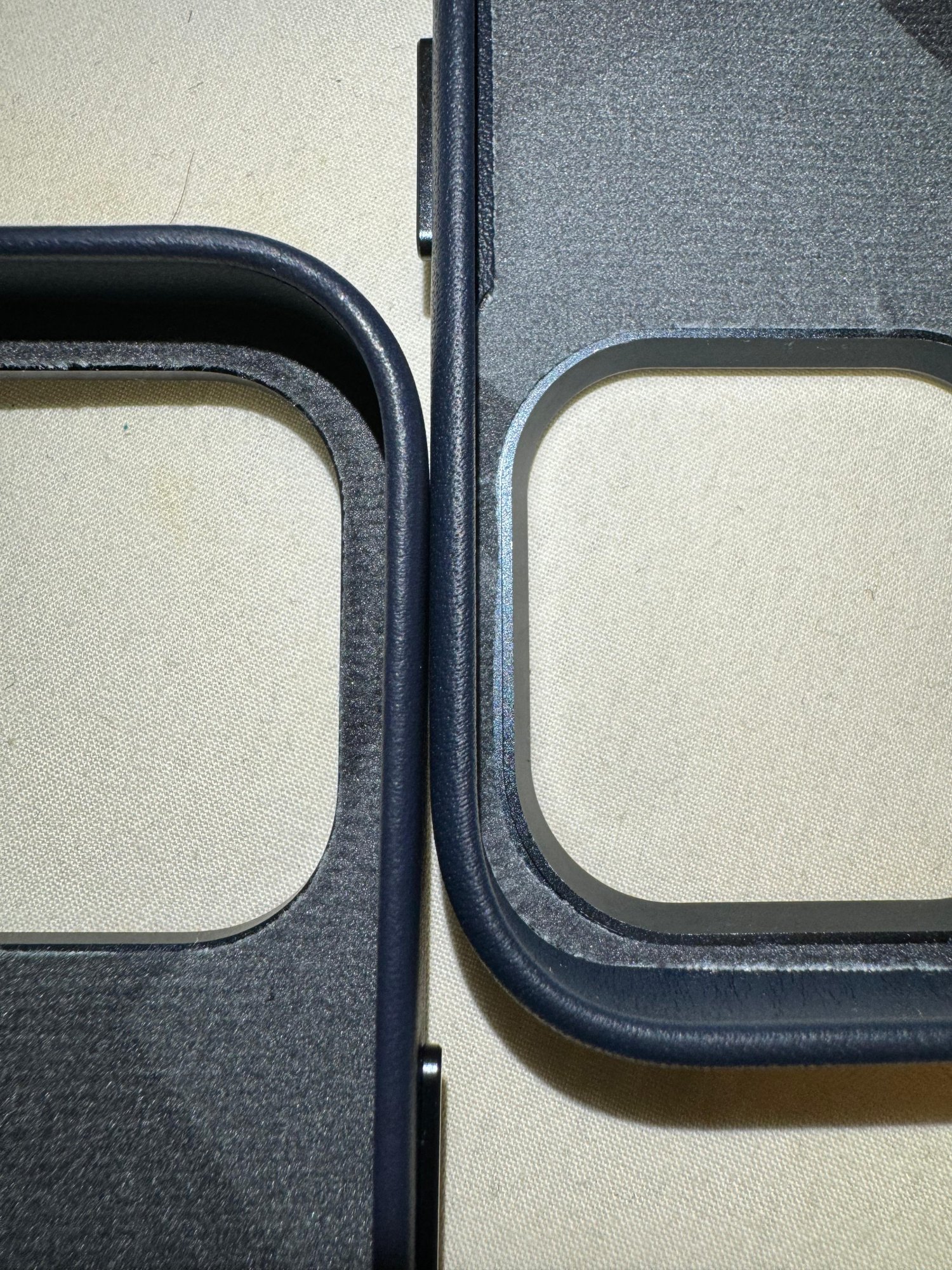 I have an issue with the decoded leather case. I orderded one, which had a badly cut usb port, it was crooked and too big. They quickly sent me a replacement, but I found someone concerning, the metal ring is completly exposed on the inside of the case, and it is even a little bit raised, which means it rests on the back glass. I find this concerning, since it could scratch and potentially break the glass. Could anyone with the same case tell me if it is like that in their case? Here are some pictures comparing both the old one, which they requested me to cut down instead of sending back, and the new one.