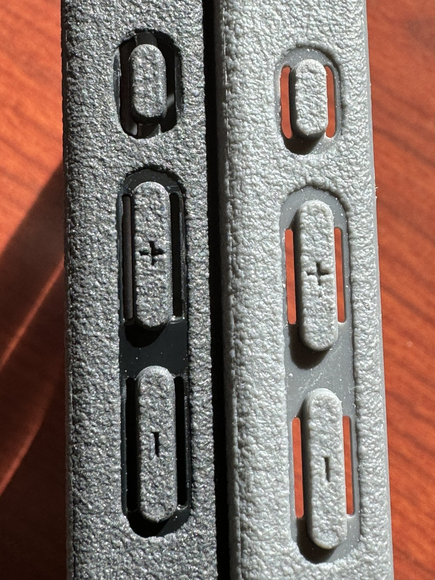 As you can see the gray Sheath is showing the circular imprint on the back which Caubabe has replaced with a revised black model (reviewed in the Cuadabe thread post #408) The replacement addresses the left buttons' responsiveness and the circular indentaions on the back, which many complained about. I've been a Caudabe user for many years and this Sheath is more substantial than previous models with a deeper texture, which I prefer although some find it too rough for their delicate pinkies