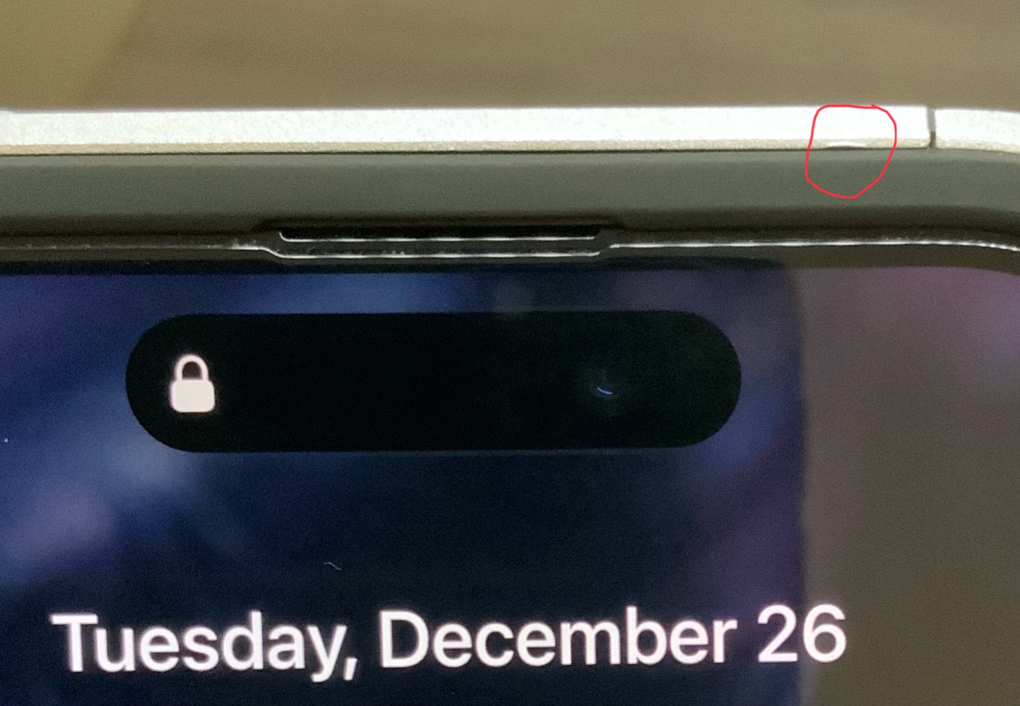 Here are the defects if anyone cares to see them. They are minor but for the cost of the case they shouldn't be there. The one above the Dynamic Island is the kind of thing that I can't help but see every time I look at the screen. Excuse the middling quality my 2nd gen iPad Pro doesn't take great pictures. The cut out by the speaker port isn't properly chamfered on the bottom edge. You can see where the tool path started but didn't finish.
