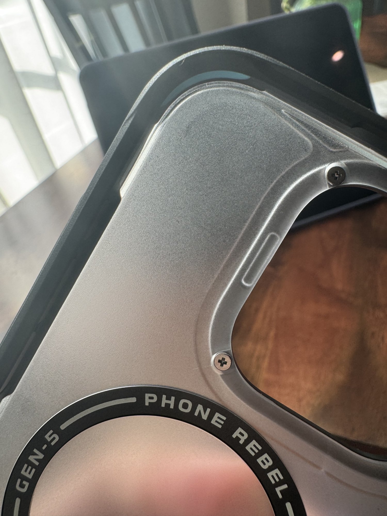 Here's the backstory: I like 'rugged' cases. I've been searching for one that's protective (like Otterbox Defender Series Pro) but also pocketable (unlike Otterbox DSP). Last week I received Rokform case. And I like it -- a lot! Rokform is known for having very strong magnets. Rokform case has superstrong MagSafe ring along with superstrong bottom plate and also an optional third magnet that can be placed on the interior of the MagSafe circle. [In order for wireless charging and Rokform case to coexist, this third magnet must not be in place.]