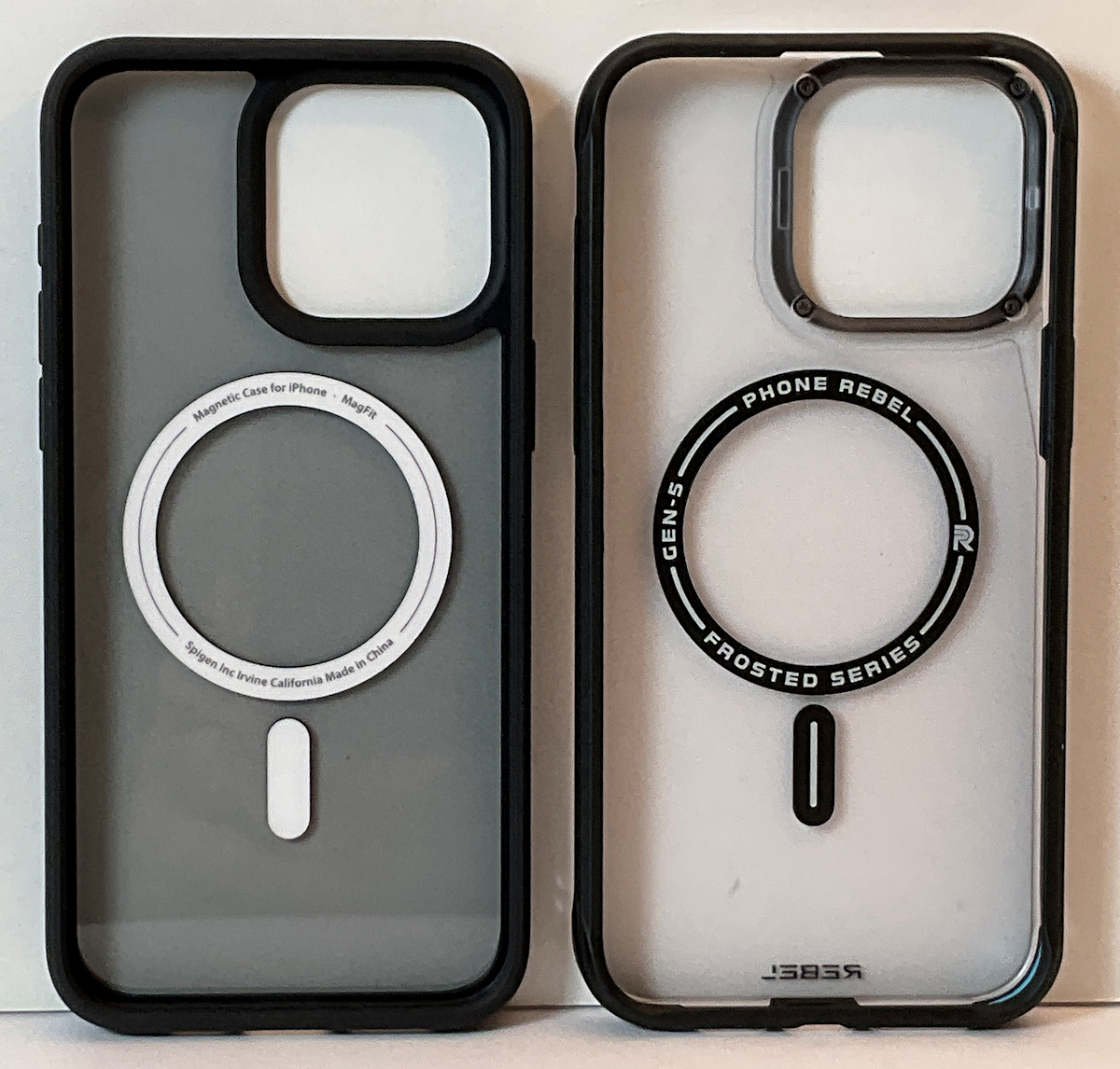 Here a couple side by side shots:Is the Spigen Ultra Hybrid frosted just “good for $20”? Or is it really a good all around case? In comparison to Phone Rebel’s frosted, price aside, which is the “better” frosty?
