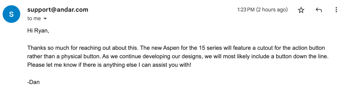 Today Andar also said they "will most likely include an Action Button down the line." Even more waiting...