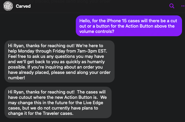 Will see how the Benks and Rebel do against Pitaka. But, since I now want a real wood case I had a chat with the folks at Carved who said they may change to an Action button for the Live Edge cases. More waiting..