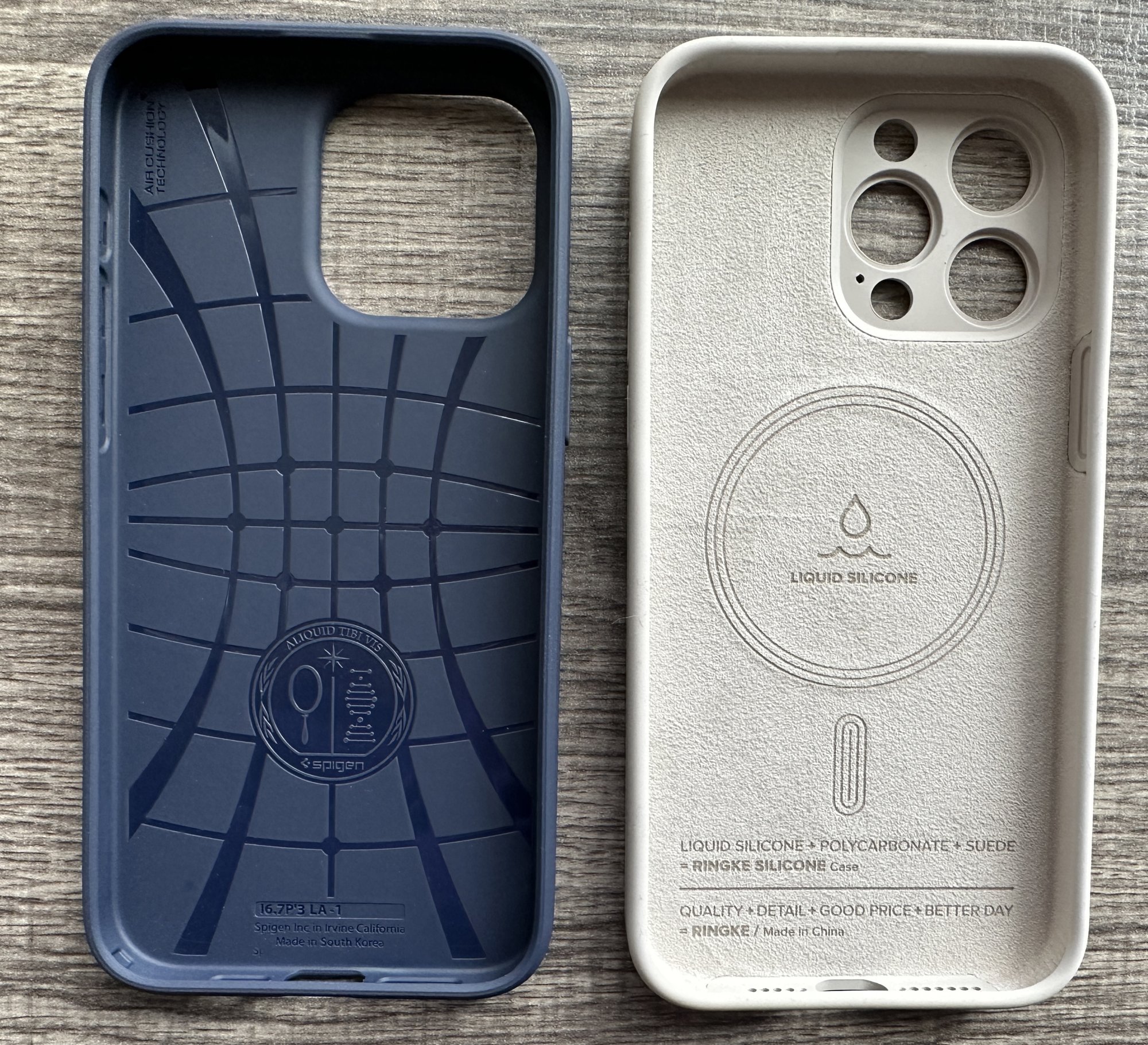 I like both of these cases! Was actually considering picking up the liquid air armor yesterday, but held off. I do think that Ringke white case would match well with the white 15 PM I'm getting tomorrow! Tough decision.A couple more cases if you are still deciding--the Spigen Liquid Air Armor and Ringke Silicone Magnetic for iPhone 15 Pro Max. The Spigen is thinner than I like so I'm going to return it but its really well made, doesn't appear to show fingerprints, and has some kind of coating which makes it less slippery. I would definitely pick this one if I wanted a thinner style case. The Ringke is a typical silicone case with magsafe and camera protection. I like silicone cases for their grip but they just don't last--they get sticky, greasy and attract fuzz in a short time. I'm going to try the light color case and see if it works better.