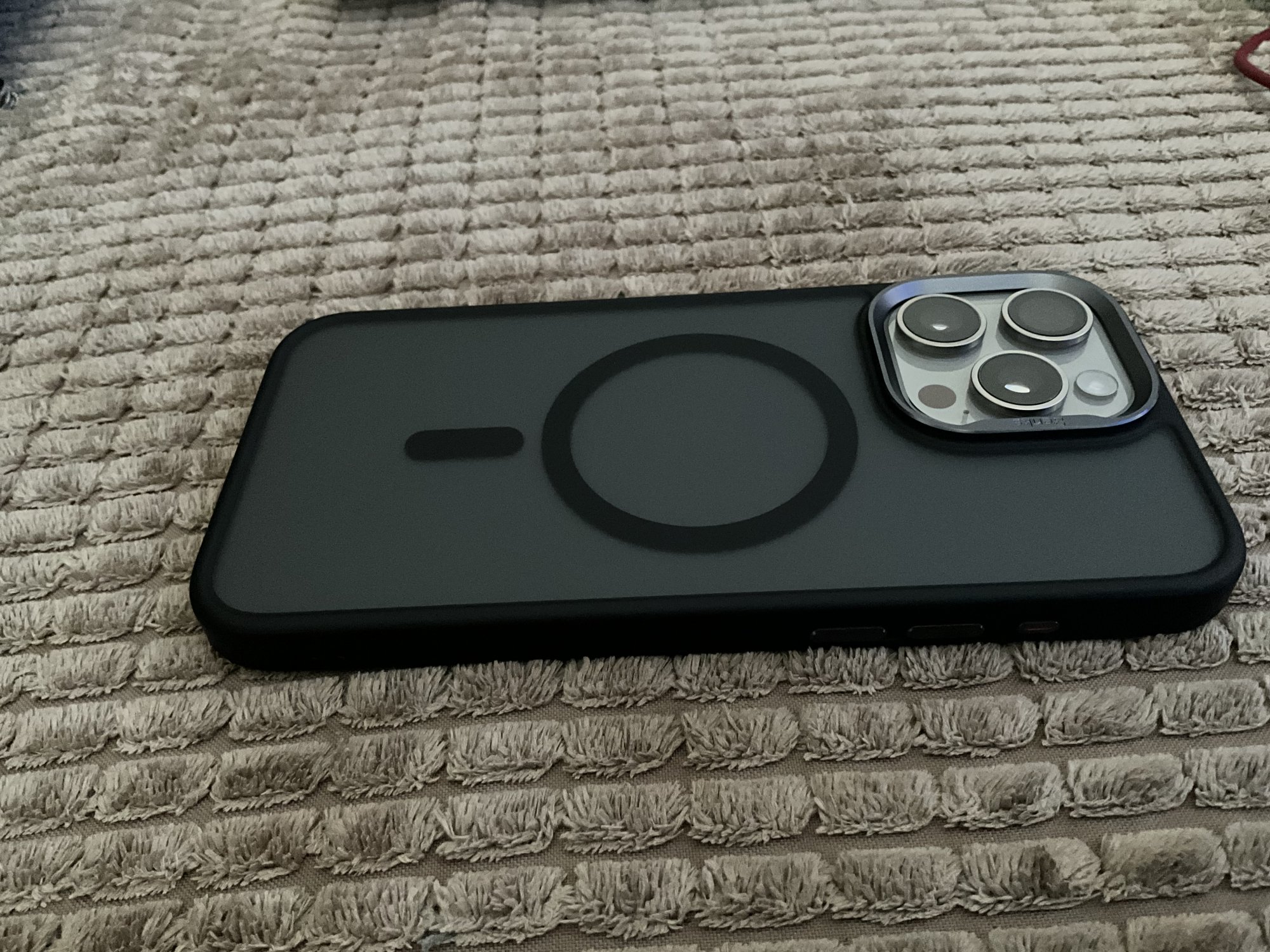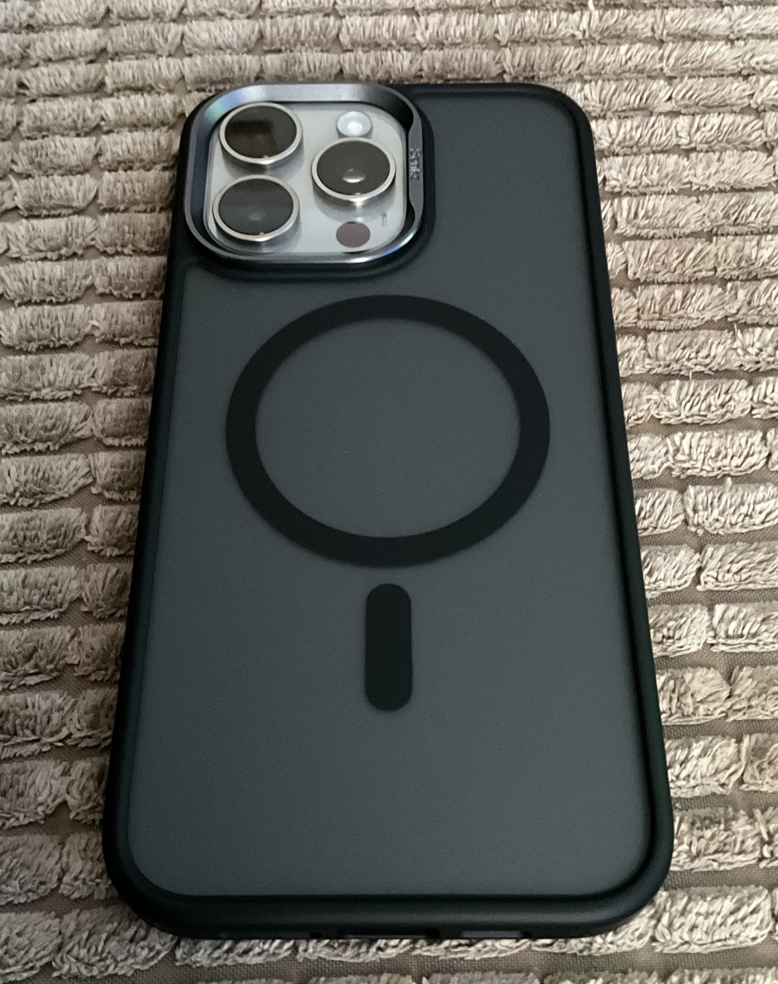 I’d been using an ESR case (clear back, black sides, “stash case” being a kickstand around the camera as a protector) on my iPhone 15 Pro since launch day—and I absolutely believe their cases are quality and at a good price, but I got a Suti Phoneback as a Valentine’s gift from my SO.
