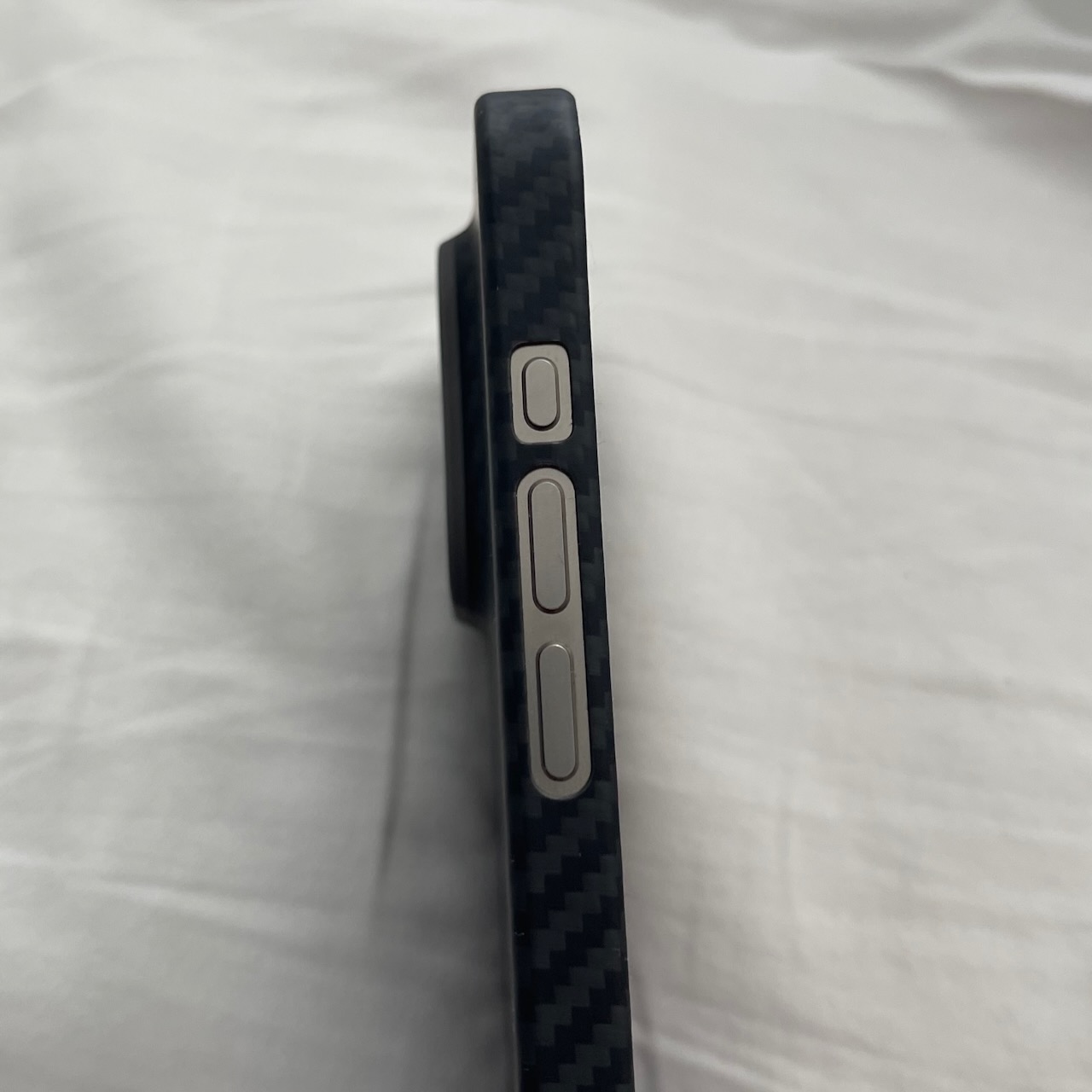 It’s got a nice soft touch feel very similar to Apple Silicone but not grippy but much smoother. Fits very snug and metal buttons are very responsive (button for action button too). MagSafe magnet is nice and strong and got a nice matte minimalistic look.
