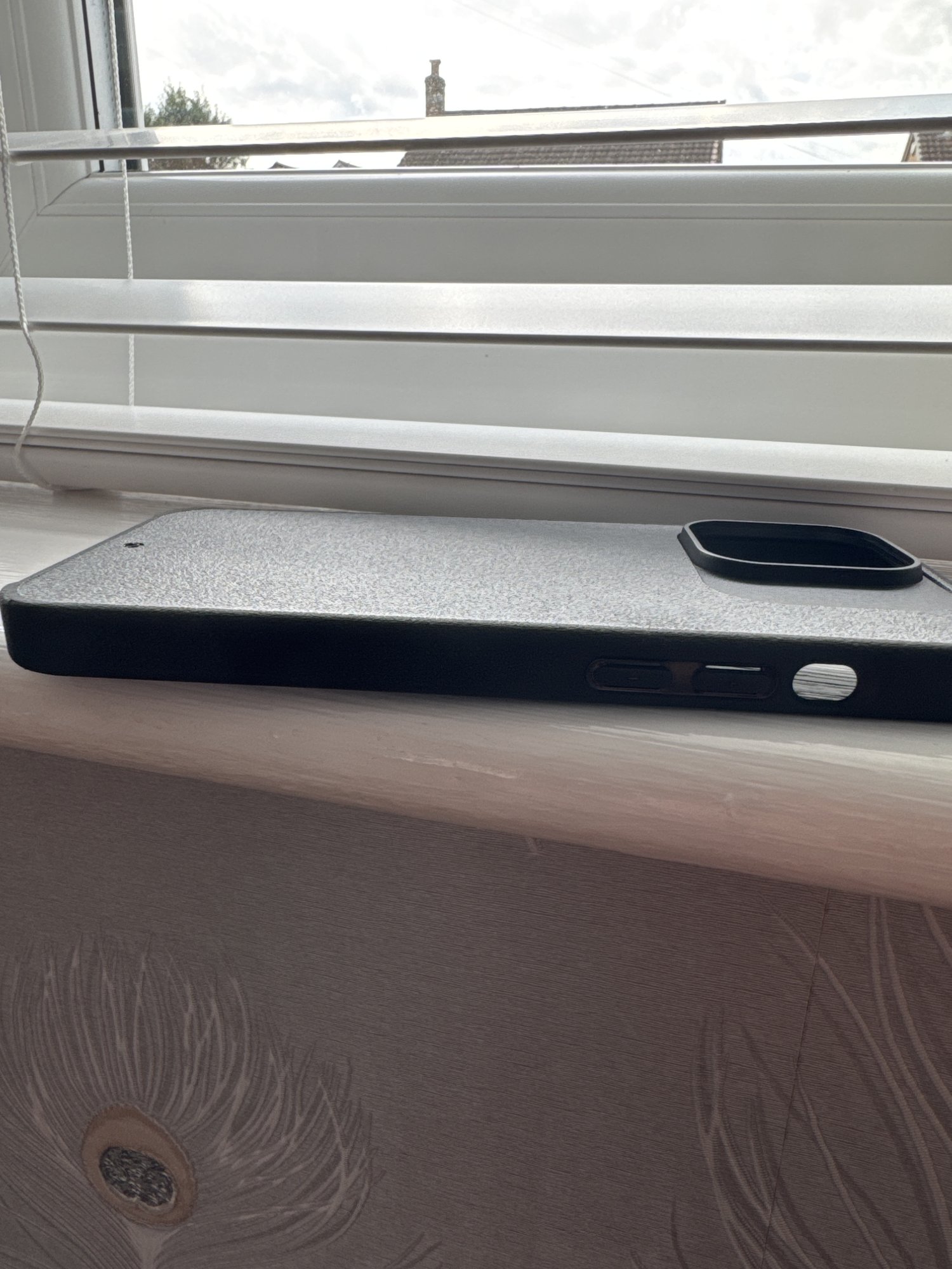 The back of the synthesis is a bit smoother feeling so the whole phone case doesn’t feel like “sandpaper” all around like the Sheath does.