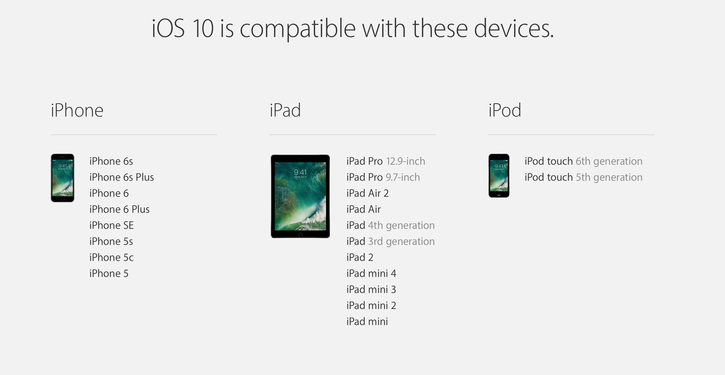 iOS 10 will support: