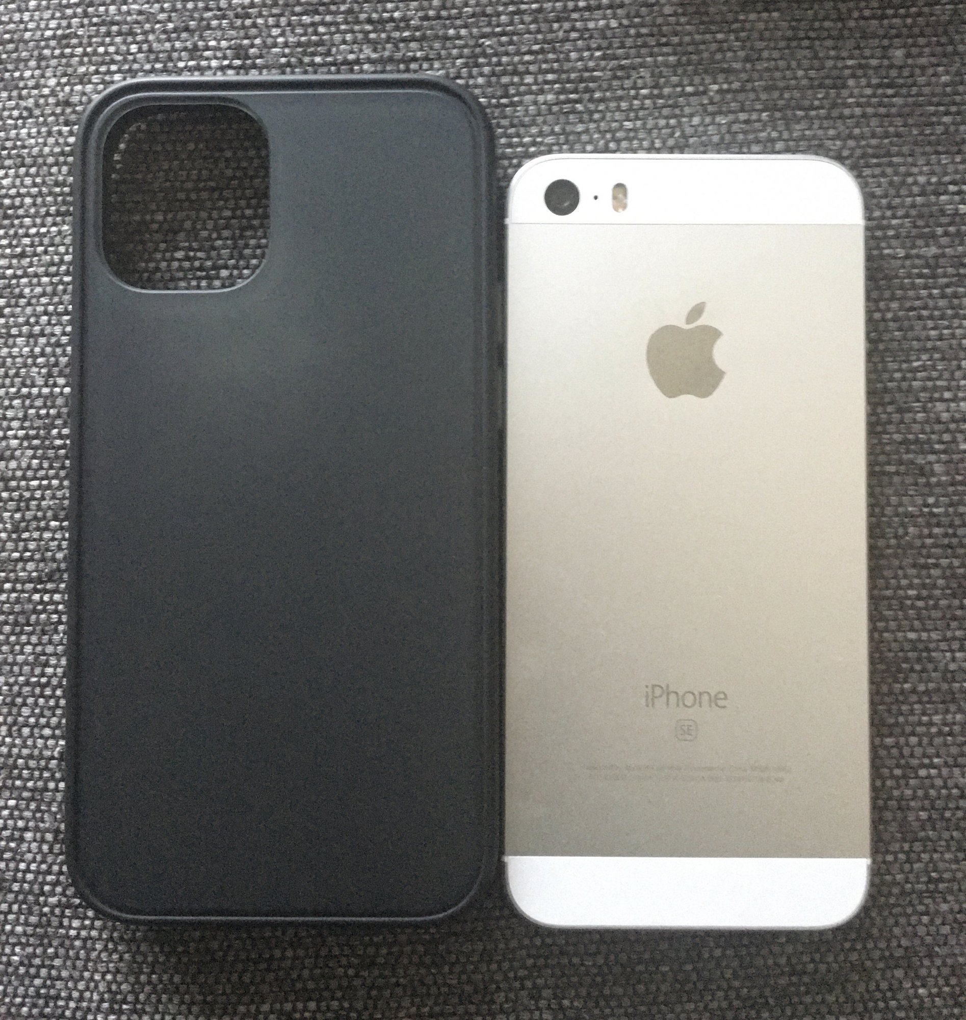 12 mini case next to the original SE and the SE inside, and also the 6s.