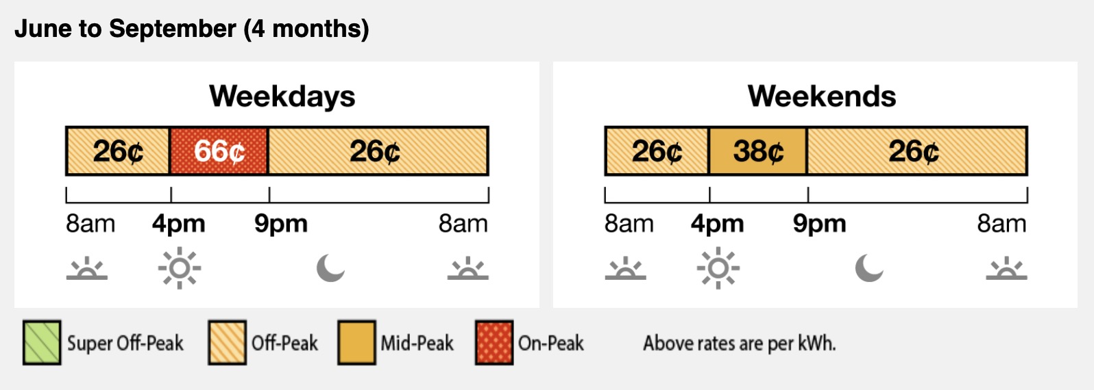 Socal Edison is trying to discourage usage / recoup costs between 4-9pm with their time of use plan ($.66/kWh between those hours).