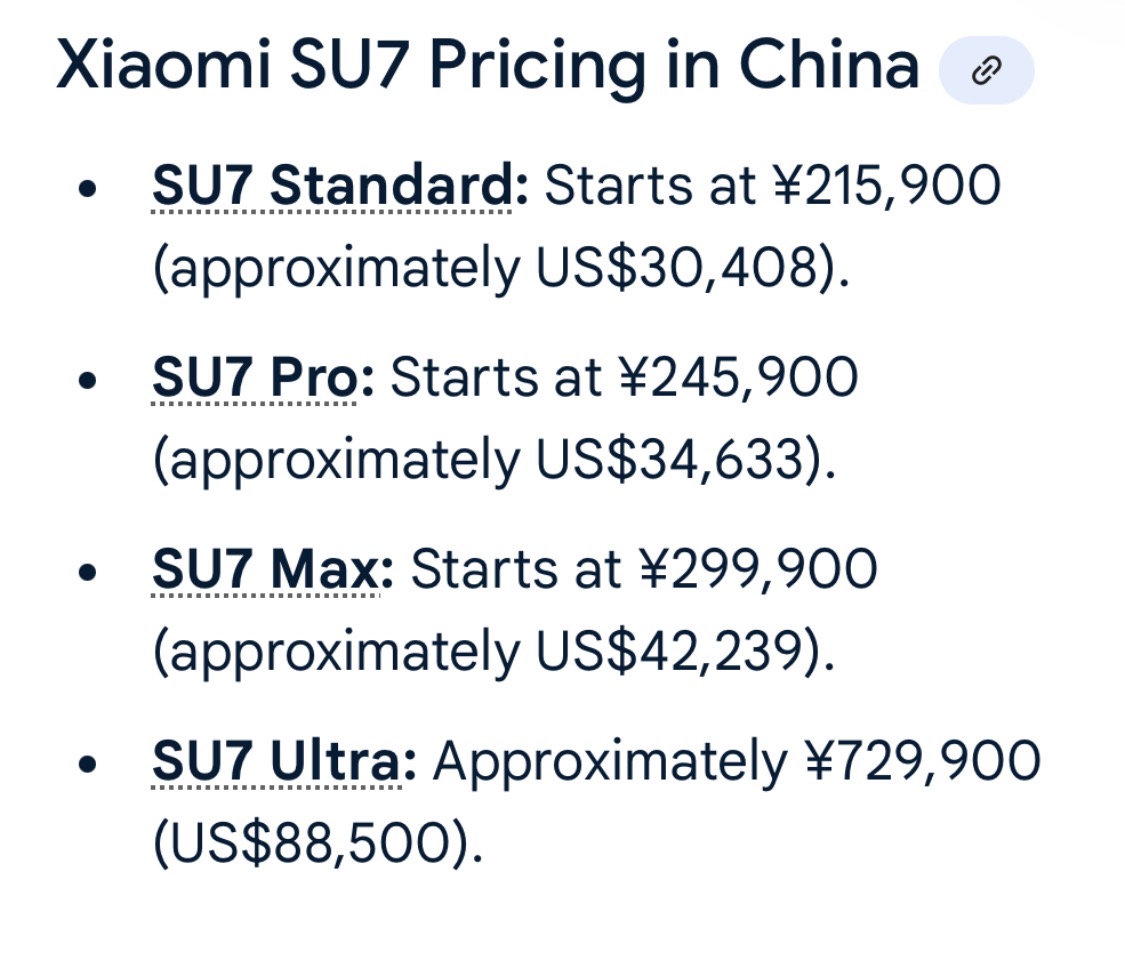 Here is an example, a Xiaomi (the phone maker!) SU7 Ultra in the wild, and the disparity in price versus a Porsche Taycan.