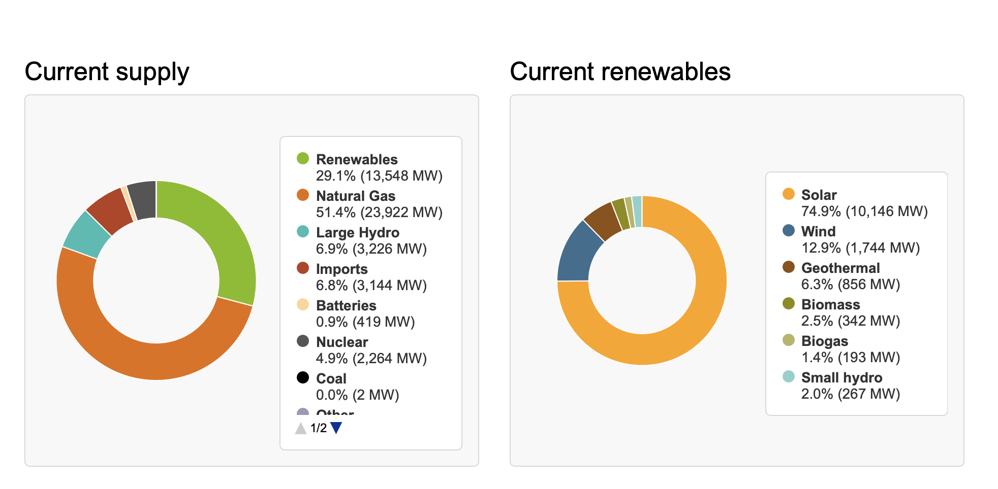 Yes, CA does import some electricity… hydro-power from Washington state. The rest of CA’s green energy is generate in the state from Solar, Wind, hydro.