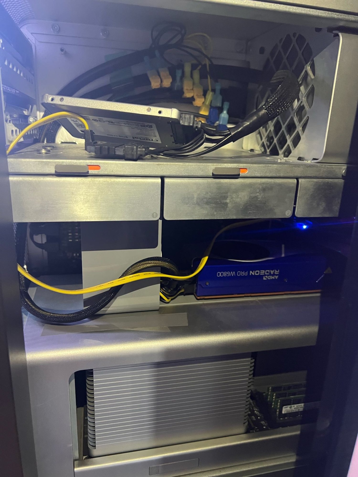 I "overdraw" (~90W) the mini 6pins for many years, no damage. And if we assume Apple follow the PCIe standard, then the mini 6pin should able to handle way more than 75W. Overdraw a little bit from there shouldn't be a problem.