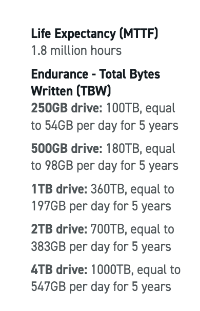 What you need to remember about the SSD in this scenario, nothing is stored on the SSD for long. We are not talking about on single file, this is a short term data base, and how fast this data is streamed off of the drive, hence the large amount of data writes i am mentioning, seeming excessive, but in AI this is bare minimal to be functional.