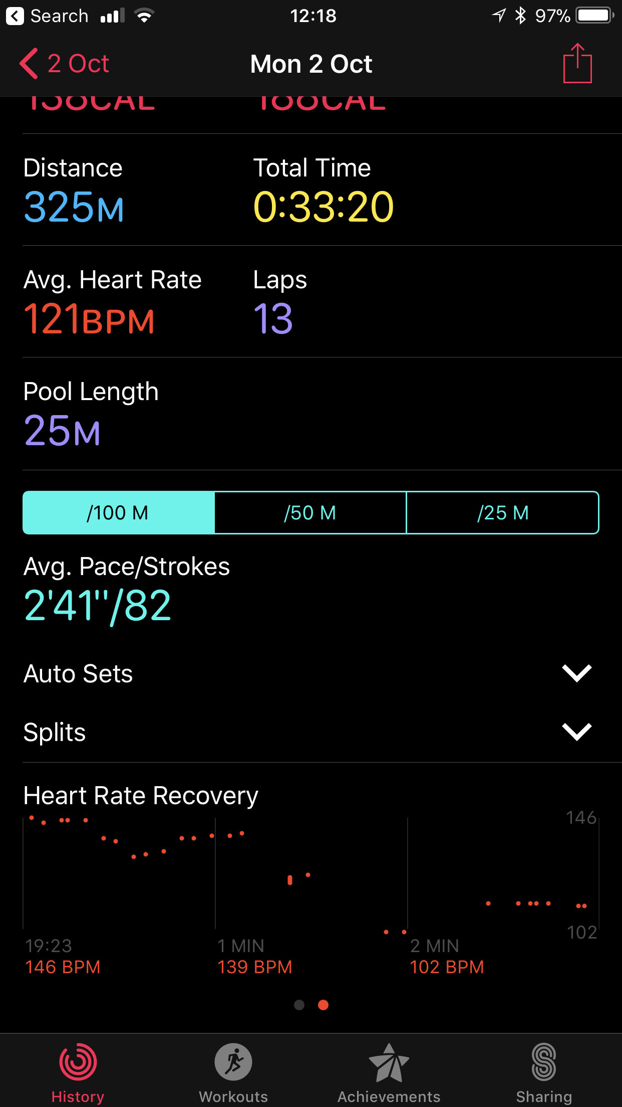 When I go to the 'recovery heart rate' chart, theres always a single red dot as if it took only 1 reading instead of many readings as my heart goes back go resting.