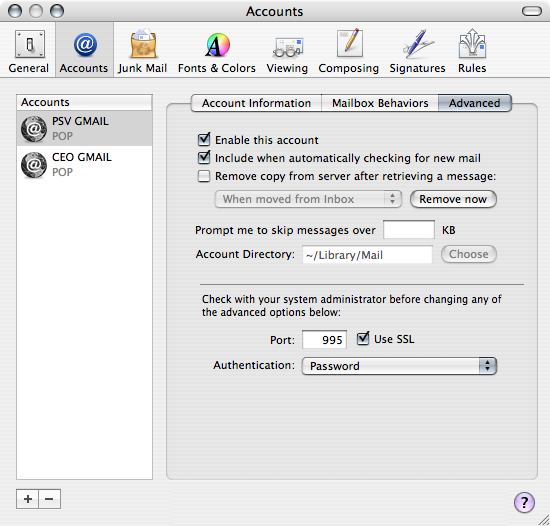 I use Mail with Gmail, and ocassionally Mail will pop open a window asking me for my password. I have no idea why it does this. It seems arbitrary. The even weirder thing is, every time I then enter my password, it just pops the same window open again, as if it didn't accept my password. So I hit the 'Cancel' button to make the window go away, and it takes my Gmail account offline. Then I right click on my gmail mailbox in Mail, and take it back online, and then it works fine - without prompting me for my password. Anyone have this issue? I think it's got more to do with Mail than with Gmail, because I seem to remember it happening before I ever had Gmail.