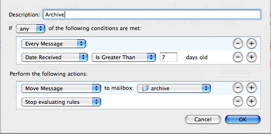 So, when you run it, the first condition is met automatically.. every message.. and they are all moved to Archive.