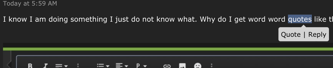 Happens when you have a word selected in a post. Will only quote the selected word. Happens if you click on "Quote" as in attached image or the "+Quote" button. MacBH928 said: quotes Click to expand...