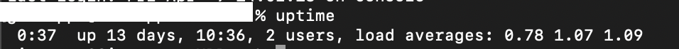 9:47 up 6 days, 18:18, 14 users, load averages: 1.57 1.64 1.83