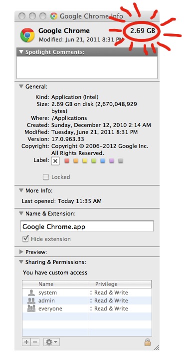 2.69 Gigabytes!?Are you kidding me? I even emptied Chrome's cache completely and deleted all of its cookies, and it's still huge.