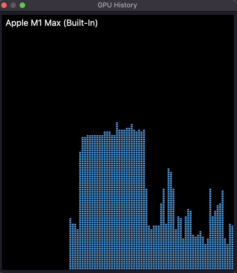 M1 max memory is under used, I would expect the GPU at least spiking up even a bit before it reaches the max and no longer copes, but it ain't the case by the look of it, as the GPU on m1 never wants to go beyond 50% if you look at the usage... like it's capped