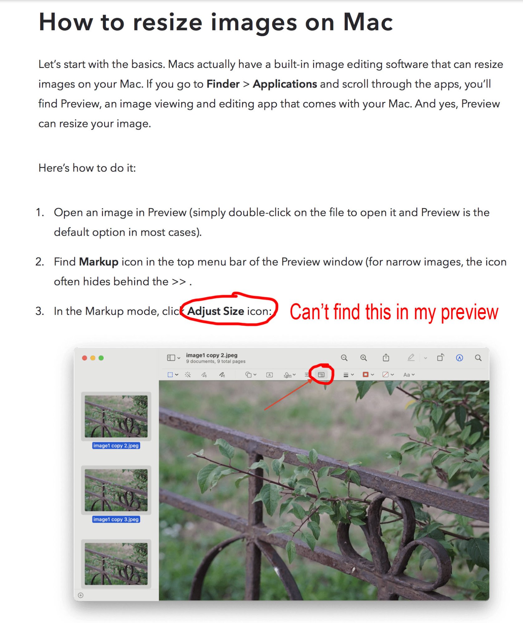 I want to resize photos and just realised Preview can do the job. Following the article, how come my Preview don't hv the resize icon. Am using High Sierra v 10.13.6, my Preview version is 10.0