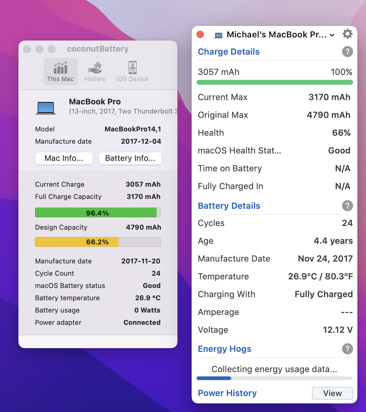 Ok, I use Battery Health 3.Coconut battery. It jumps around apwhen I check it each time.