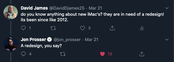 Also Mark Gurman mentioned the iMac, saying that Apple were going to release a substantial updated model.