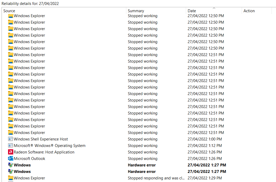 My bad I meant can you open "Reliability Monitor" the easiest way of finding it is search from start menu.there is a delay sometimes to open start and typing. The whole OS feels as though it's a beta.
