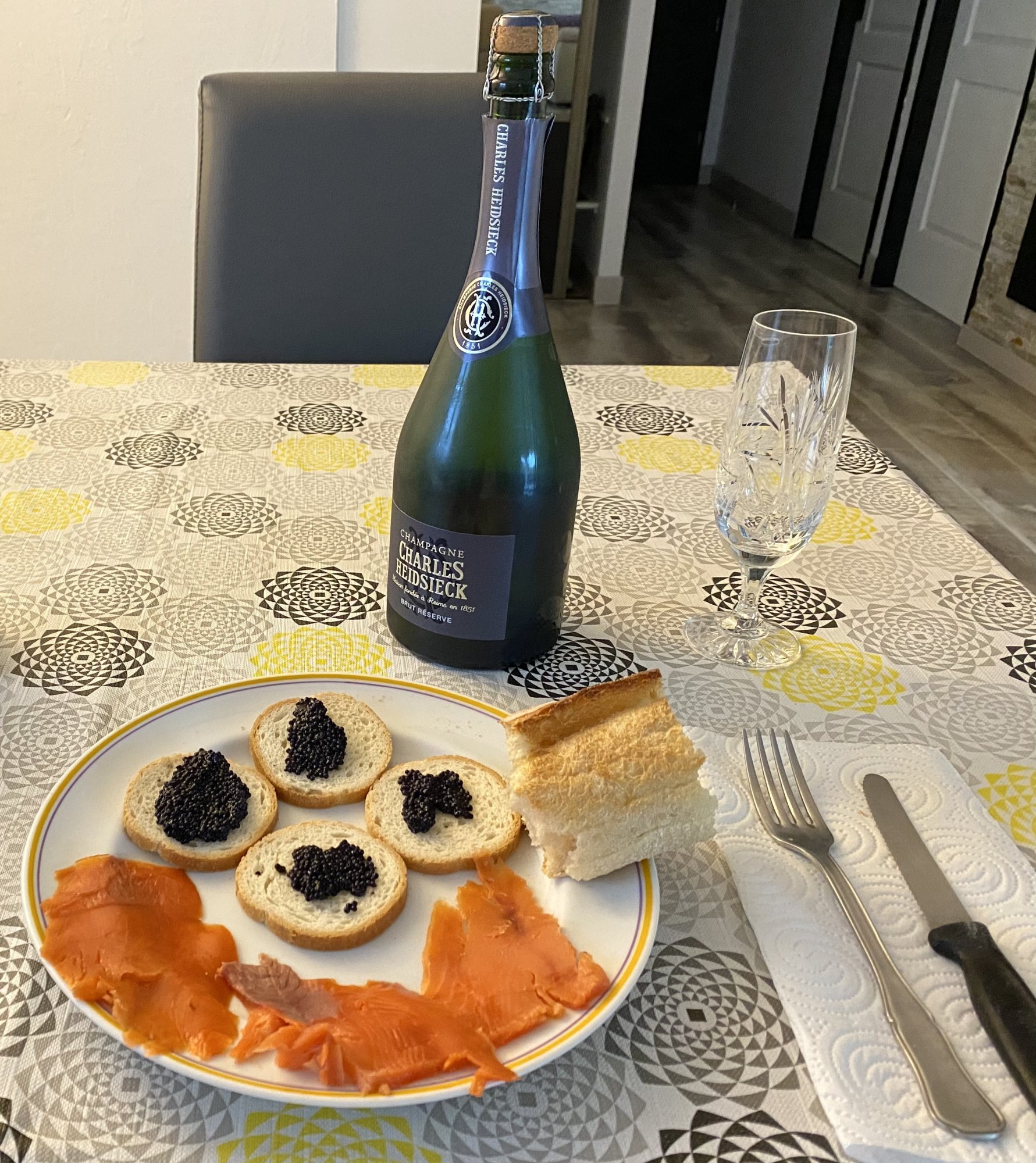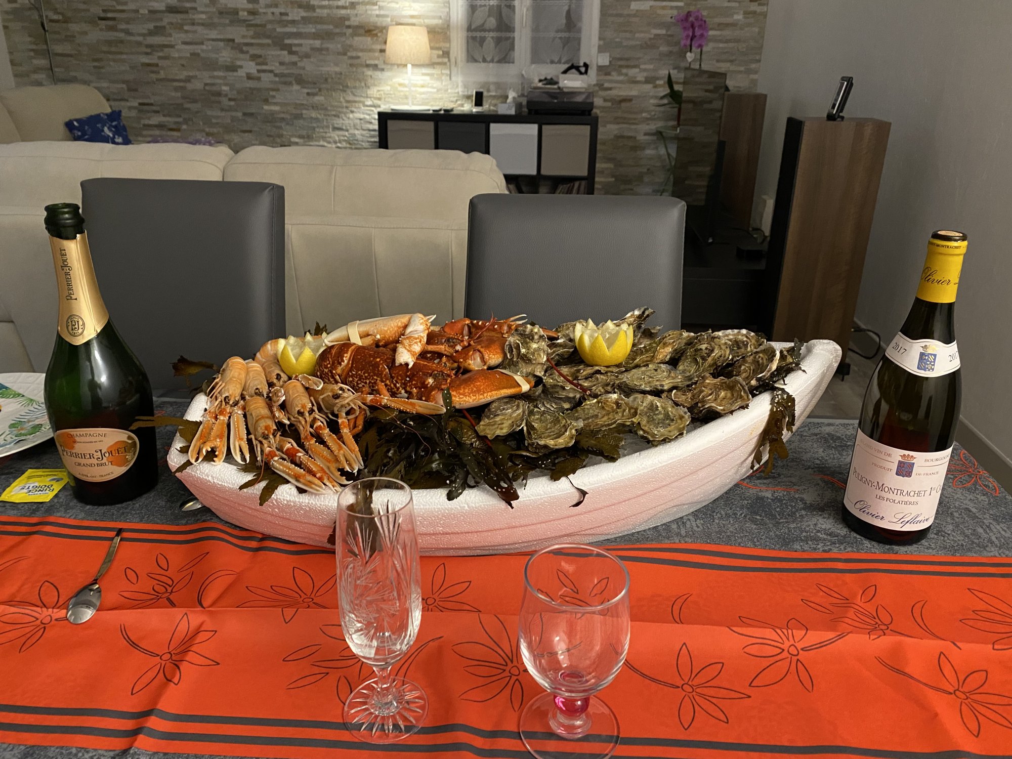 Charles H Grande Cuvée (it has a special place in my heart because it used to be the one they served on Singapore Airlines), then Perrier-Jouët, then a wonderful Puligny-Montrachet 1er Cru Les Folatières and because that was not enough…a flabbergasting Meursault 1er Cru Gennevrières.