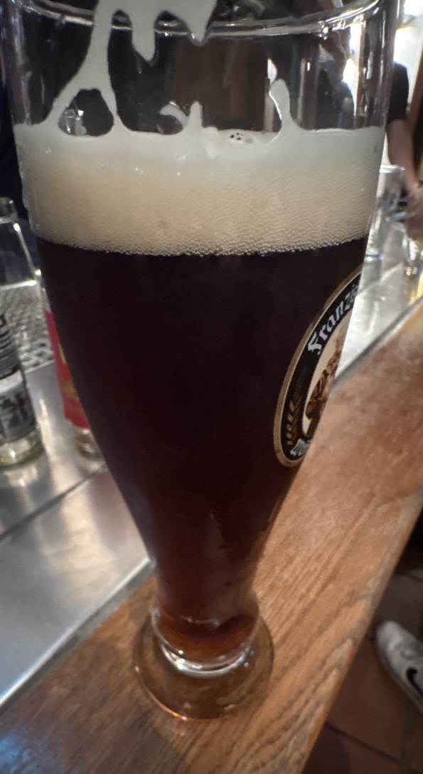 Dark Weissbier will always receive a very warm welcome from me.Today I'm in a student bar at the invitation of a barman. There's a Maisel's Dunkel here. It tastes very delicious like banana milk. Quite recommendable, if you like dark Weizen.