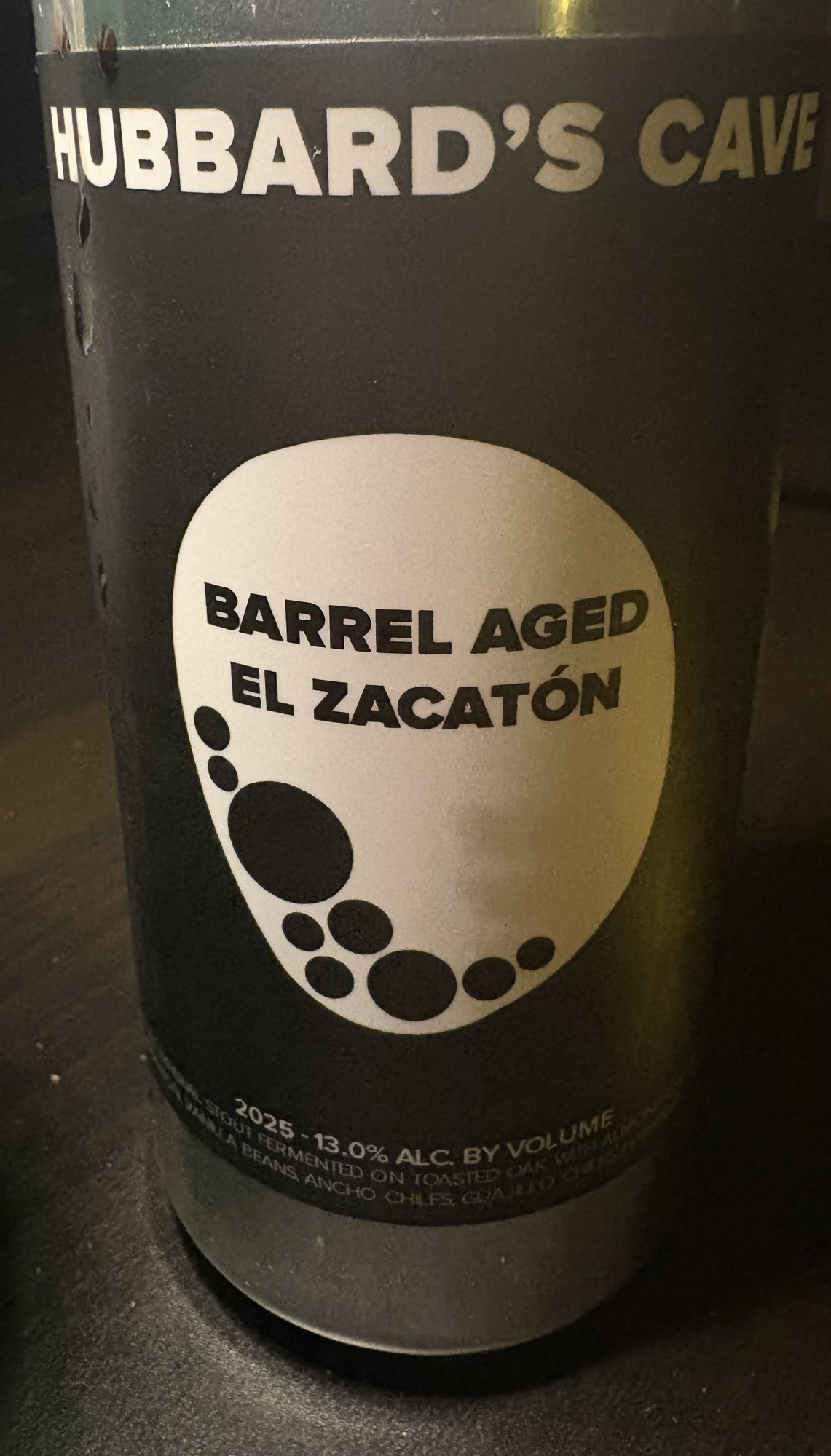 Sounds amazing.Barrel-aged stout with three types of chillies. Amazing, burning hot, deep chocolate and cinnamon flavours.