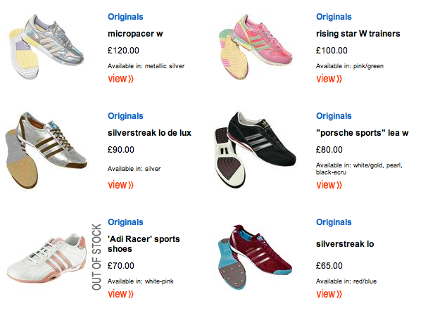 Ever since I was a kid, this has pissed me off. Every single time I look for a new pair of shoes, or a coat, or anything like that, all the men's clothes are really nice colours, like browns and reds and so on, and all the women's stuff is white or pink or powder bloody blue. If there's a nice pair of trainers, it usually doesn't exist in the women's sizes, or if it does the men's are usually white and black, brown, green, yellow and so on, and the women's ones come in white, white/pink, white/light blue, and if they're really pushing the boat out, white and bloody silver. GAH! Same with other clothes - men's hoodie - plain brown, ladies hoodie - brown with a big pink flower embroidered on it. Jackets - women don't require hoods, apparently. Clothing manufacurers have obviously heard about the forcefield surrounding our heads. Either that or they think we stay indoors going "Ooh, it's raining, I won't want to go out because my makeup will run". Again, GAH!
