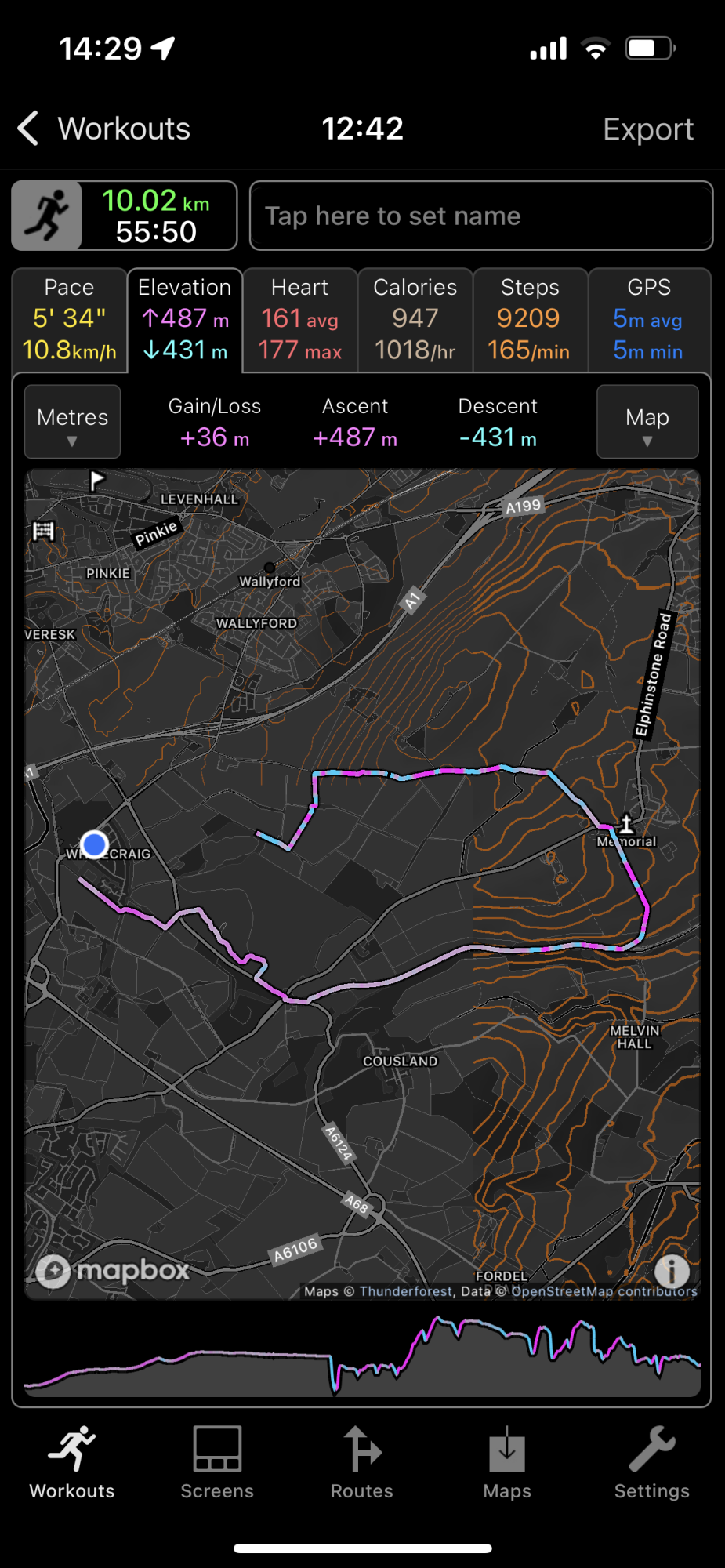 I just did a 10km run. During it I paused the workout a couple of times, slowed to walk a couple of times. It was pretty varied. WoD has registered 470m elevation gain, which is definitely incorrect. It’s closer to 150m. I think it might be displaying feet when my setting is metres. But there also appears to be a strange thing going on with elevations. I’ve attached screenshots of the run in WoD and Strava.