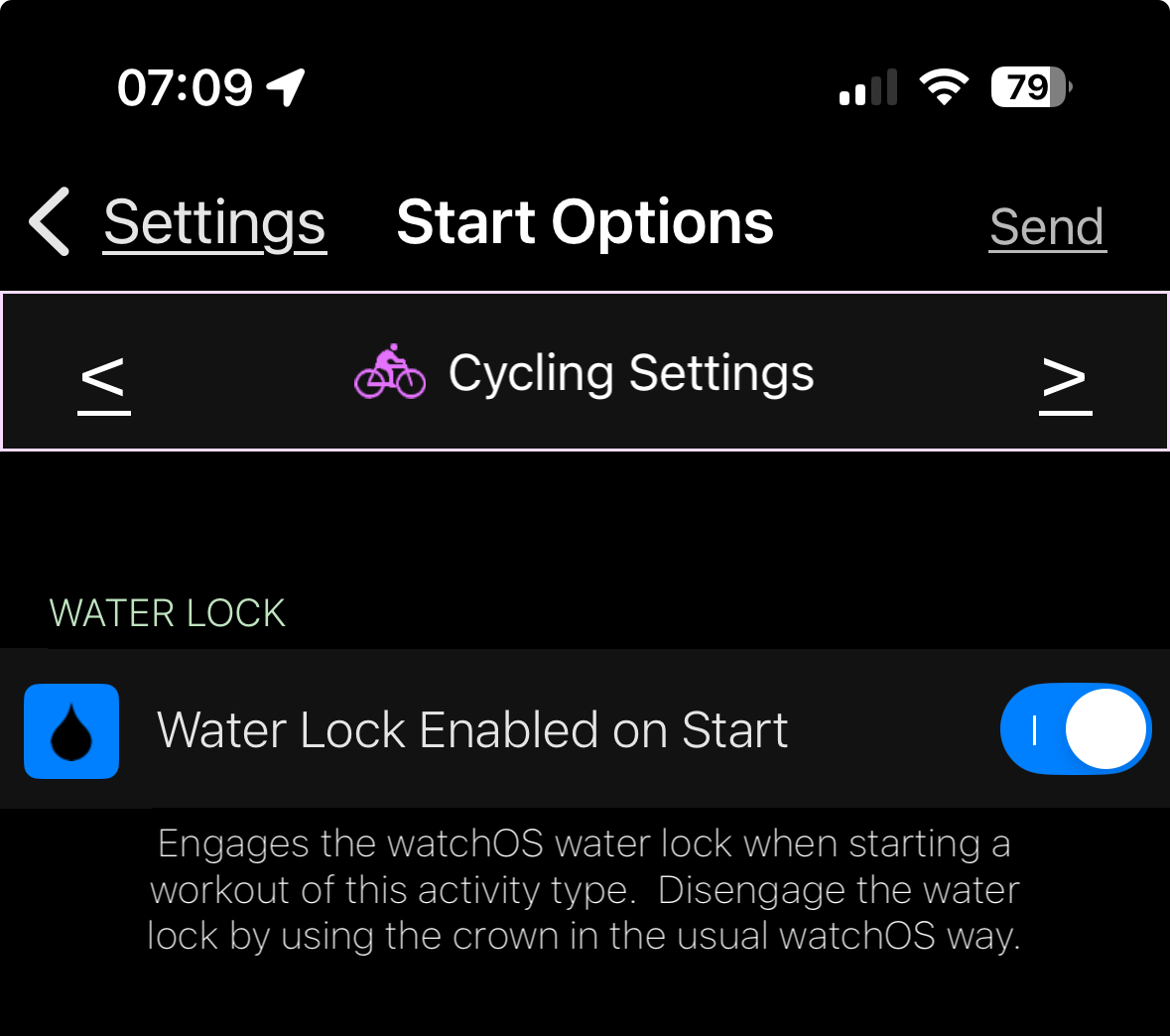 Now I can start precision Start with action button and pause with action button+ side button. Then decativate water lock and end my workout.