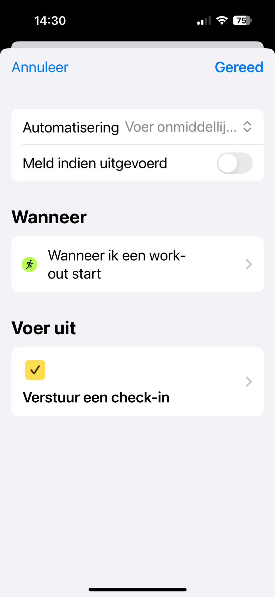 To be honest I don't know much about shortcuts, but maybe other people with more knowledge of them may be able to help?Hello Ian! Thanks for your reply. I don’t mean a checking in or love tracking feature, just if there a way to trigger a shortcut or else when starting the workout with WOD to start a check in session with the built in watchOS feature