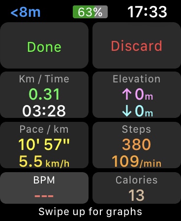 About the summary page, it is the one on the watch you see after you end the activity and where you have the "done" and "discard" choice at the top. I went out for a short walk this time and took a snapshot (attached). Here the distance appears.