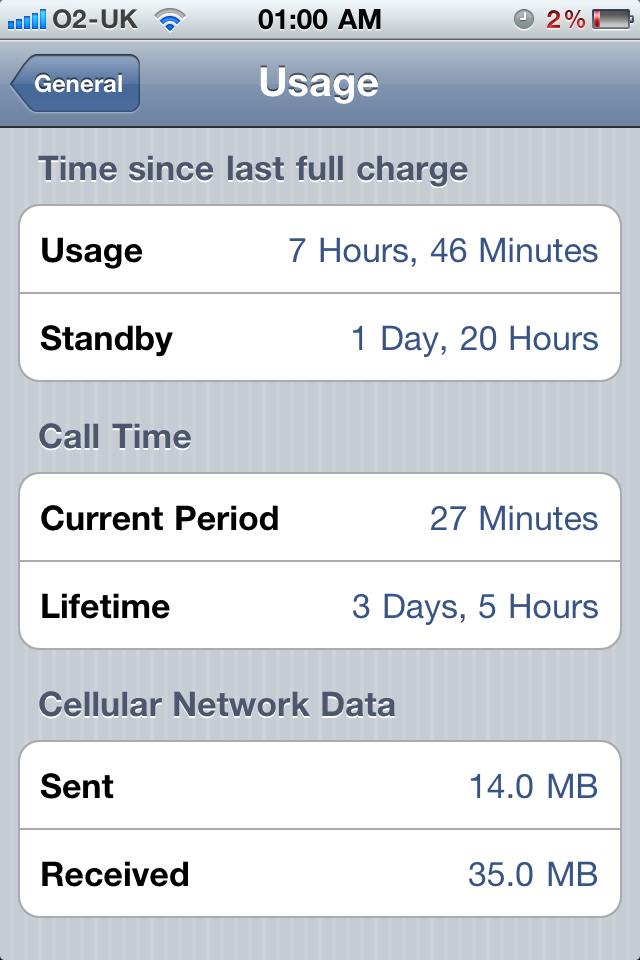 So last night i compared with a guy at work both starting with 100%, now also remember my phone is days old, his is months old. Now my phone started off with no multitasking apps open, location off, wifi off, facetime disabled,push and notification off, no bluetooth, and i had my data enabled so i could go through forums and check facebook.