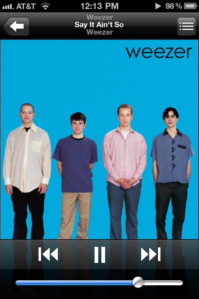 I found an interesting problem/glitch while playing music today. While playing any of the songs on the Weezer Blue Album, it displayed the correct artwork while in the iPod app, but when locking the phone it displayed the artwork from a Nirvana album. I've checked the artwork settings in both the Nirvana album and Weezer album's songs and it all looks fine and it displays the correct one while in iTunes, but like I said while the phone is locked and playing the music, it is the wrong ones. Here are some screenshots I took showing this.