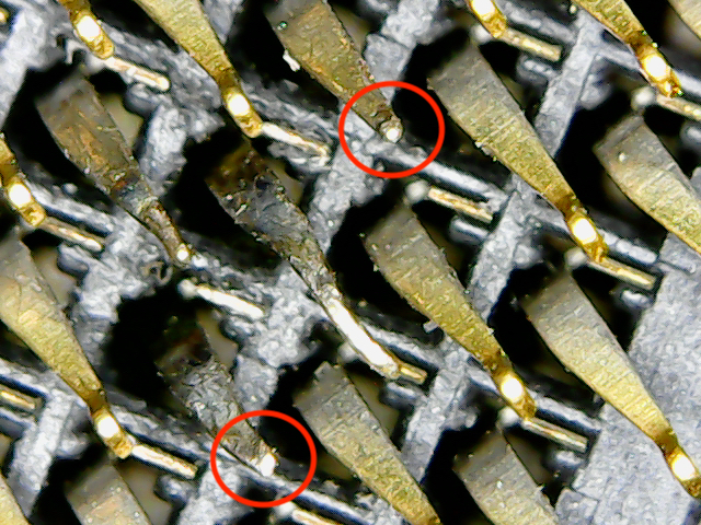I bend them back in place with a microscope, unfurtanatly 2 broke at the top, I got them straight up, so maybe they still make a connection.