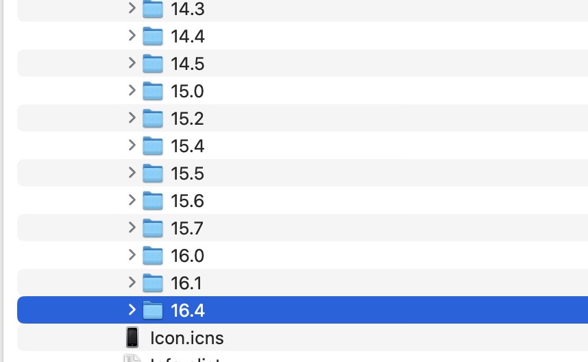 10. In the earlier Finder window you'll see "16.4" - Copy (Cmd+C) the directory and in the new Finder window, paste it (you'll see that the directory is missing)