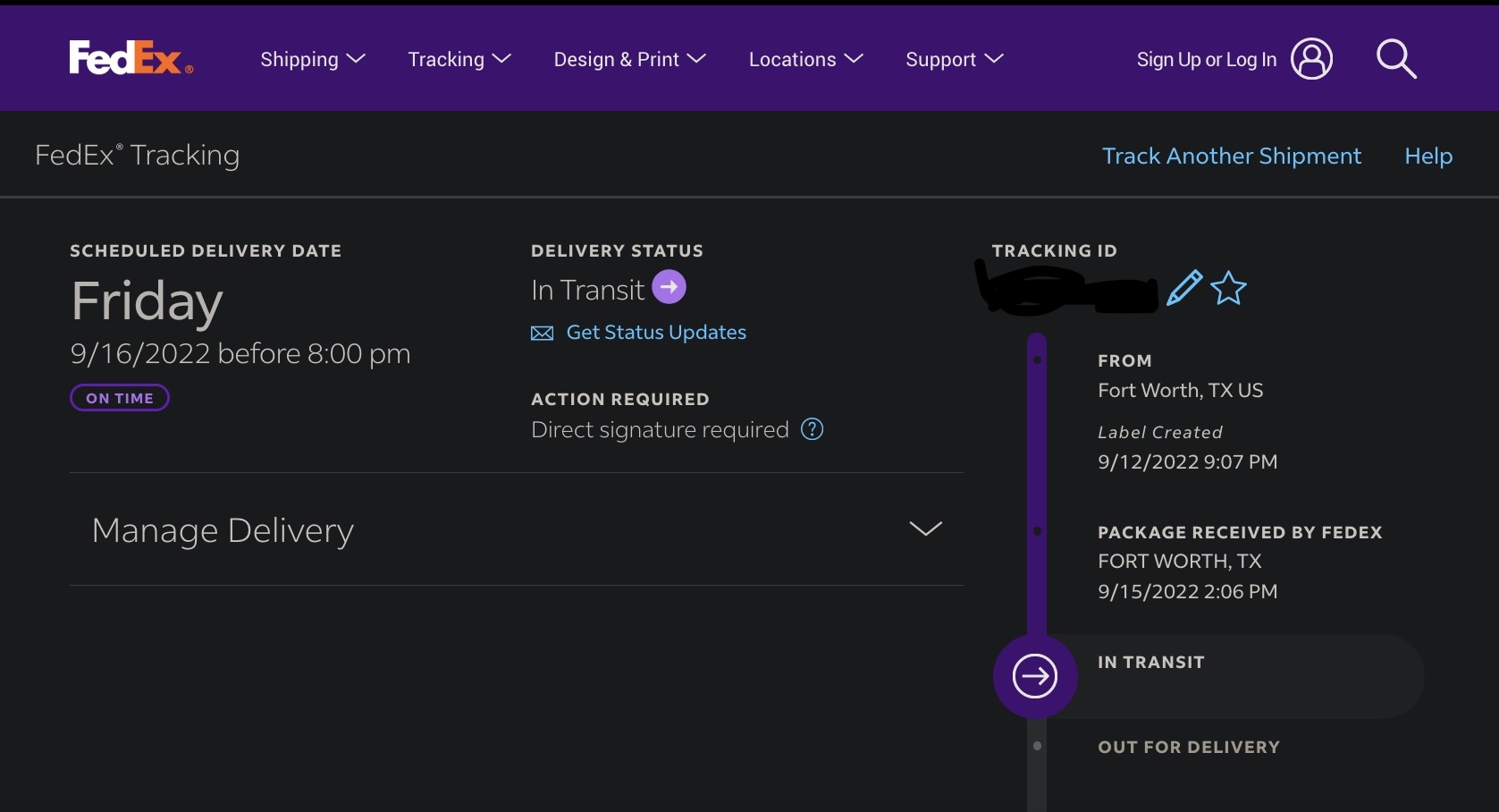 I’m in the same boat as you with a Saturday delivery date.9/16. That said, my FedEx tracking number just shows that label has been created in Fort Worth, but nothing has shipped out yet. I'm just glad to have a tracking number at this point.